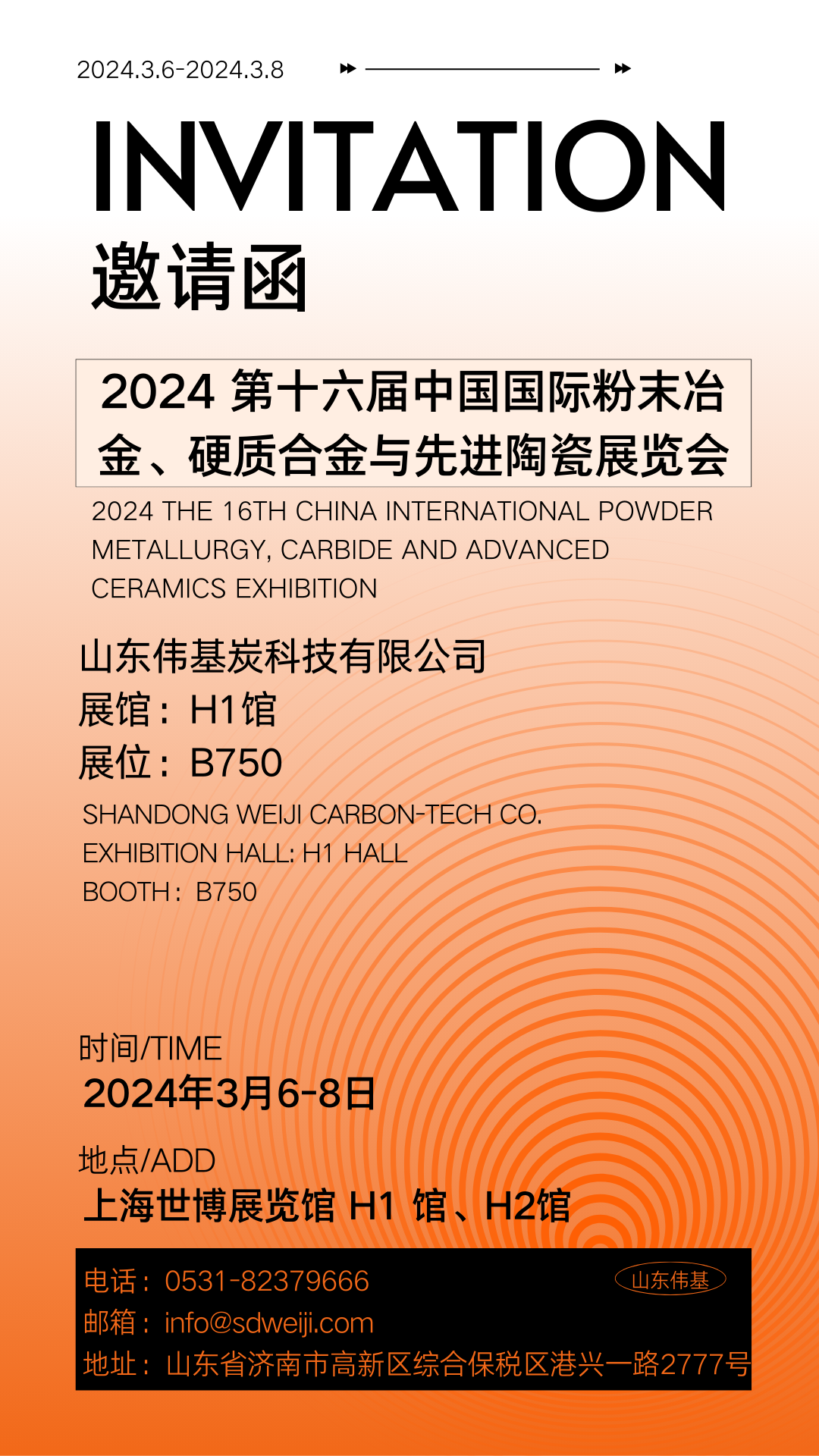 山東偉基將參加2024第十六屆中國國際粉末冶金、硬質(zhì)合金與先進(jìn)陶瓷展覽會,歡迎您的蒞臨。